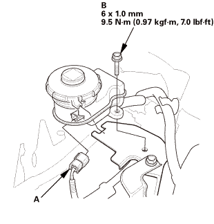 |  | 3. | Remove the clutch master cylinder (A) with the clutch line (B)