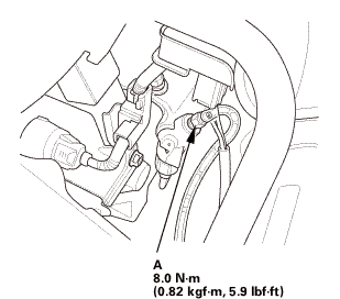 |  | 4. | Make sure the hose clamp (A) is positioned on the clutch master
