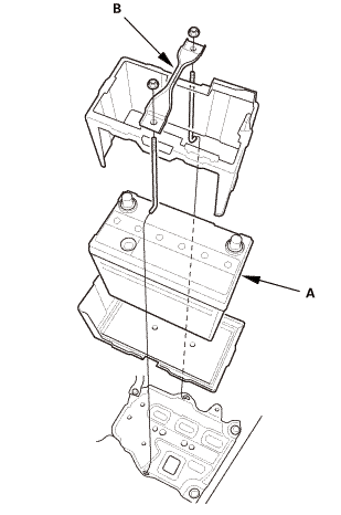 |  | 3. | Connect the negative cable and the battery sensor (B) to the