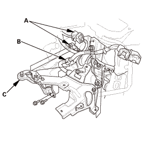 |  | NOTE: To protect the battery sensor connector (C) from damage,