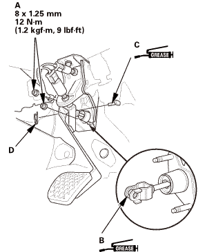 the clutch pedal cover or the clutch pedal pad cover (D) to the