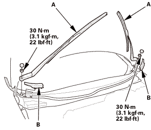 | NOTE: Set the wiper arms to the auto-stop position before removal. |