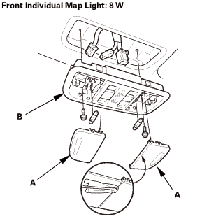 Honda Civic Service Manual: Front Individual Map Light Removal, Installation, and Test (With Moonroof)