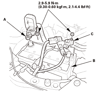 Disconnect the positive cable (C) from the battery.