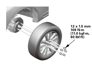 Honda Civic Service Manual: Front Wheel Bolt Removal and Installation (Except Si models)