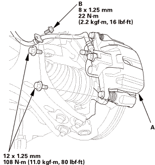 |  | 1. | Separate the wheel bolt (A) from the hub (B).