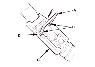 While pulling the front seat belt (B) upward, remove the screwdriver