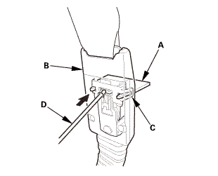 screwdriver (D) into the hole in the lap connector cover, and unlock