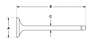 Subtract the O.D. of the valve stem, measured with a micrometer, from the I.D. of the valve guide measured with an inside micrometer or a ball gauge. Take the measurements in three places along the valve stem and three places inside the valve guide. The difference between the largest guide measurement and the smallest stem measurement should not exceed the service limit. |